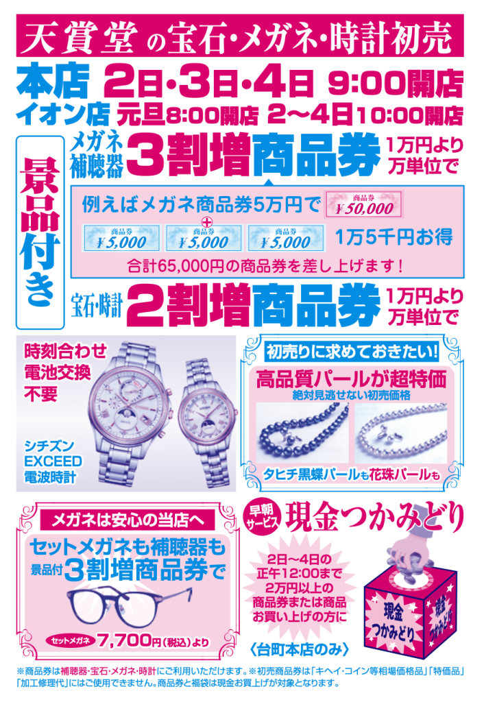 天賞堂では「令和8年 割増商品券」を発売中です。しかも、特典付きです。